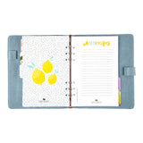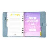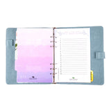 A 6 ring binder made of soft PU leather and includes five illustrated dividers.